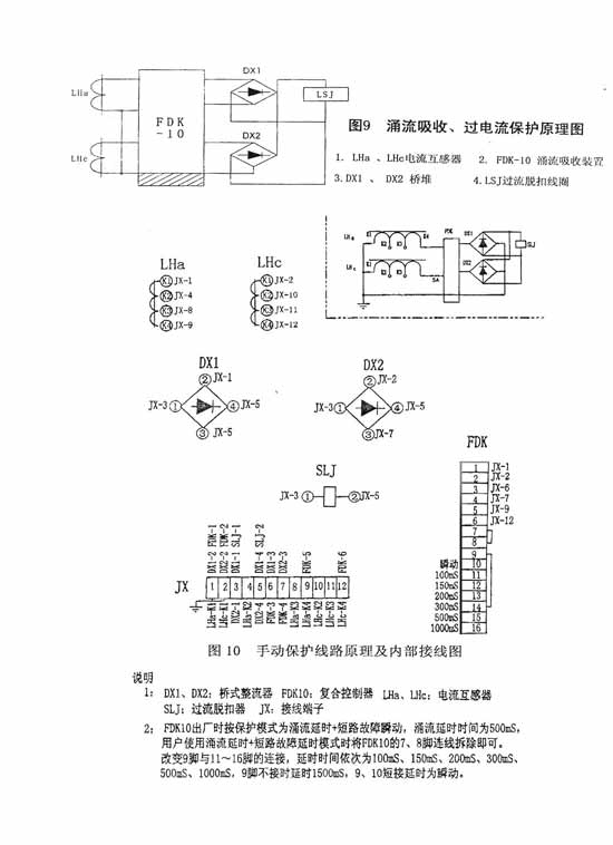C. surge absorbing device is an overcurrent tripping coil mounted on the protection circuit of current mutual enough for two circuit, its function is the instantaneous strong current circuit breaker in the closing moments due to the actual existence of impedance of 10KV distribution lines (caused by inrush current) in the two side short-circuit current transformer, do not make the inrush current into the overcurrent release coil to generate wrong tripping action. Surge absorption device mounted on the circuit breaker switch., the electrical principle diagram shown in figure 9.