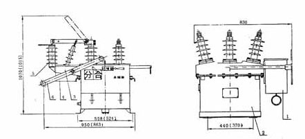 The basic structure of the 1.1 circuit breaker by the circuit breaker body and an operating mechanism (see Figure 1, figure 3, figure 4), the circuit breaker body by a conductive loop, seal, a shell body, the whole three-phase common box type structure. The conductive loop outlet silicone rubber casing, conductive support, soft connection, conductive clamp and the vacuum interrupter connected, external insulation by high-pressure casing production guarantee, the exposed surface stick on anti-aging, anti contamination of silicon rubber umbrella skirt, insulation, insulation cover by air to achieve the lower shell body is provided with. Moisture absorber (dryer).