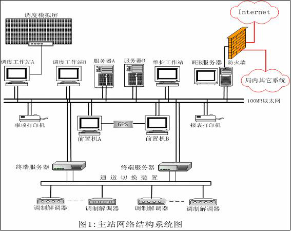 This system mainly realizes the data acquisition and communication equipment and terminal (such as: Telecontrol equipment RTU, integrated automation communication machine) data acquisition, monitoring and real-time data, processing of historical data, with four remote, SOE, PDR, WEB service, load forecast function. Master station system software is divided into two parts front and back machine, the machine is divided into server and workstation, the machine is connected by 10/100/1000Mbps Ethernet (single network, network can be), system structure is shown in Figure 1 (this system adopts the structure, double double with some work station according to the following structure Description):