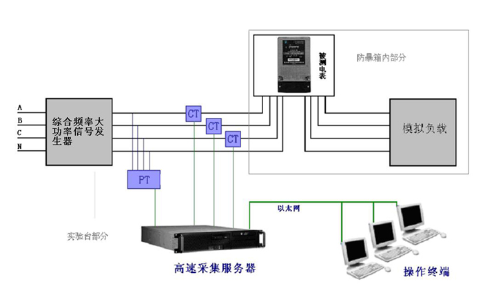 This platform may include three parts: 1, the site environment simulation test station. 2, precise measuring part (applied to electric energy acquisition server table laboratory). Riot test box 3, temperature adjustable.